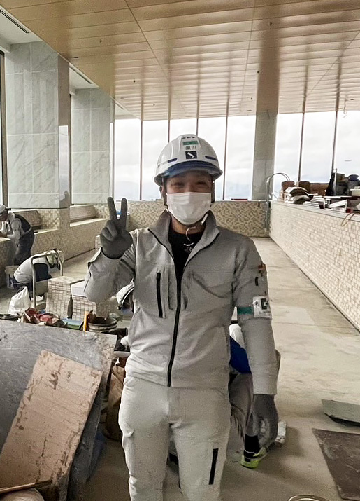 - 仕事へのやりがいを感じています。特に住宅などのタイルを張った後に見ると、やりがいを感じます。